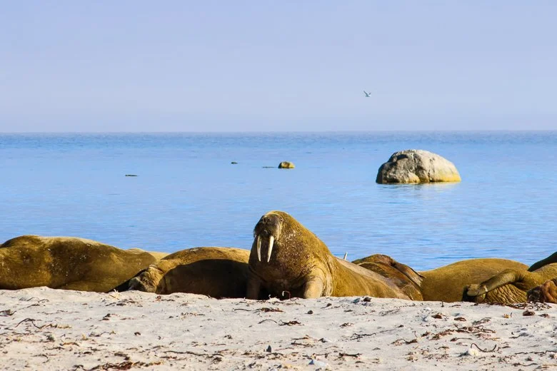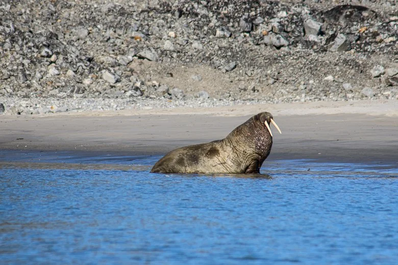 Im Bereich Nordwest-Spitzbergen bietet bereits der Isfjorden zahlreiche gute Anlandestellen und lohnende Wandermöglichkeiten. Am Eingang des Fjords liegt Alkhornet, eine markante Felsformation, in deren Felsspalten häufig Polarfüchse zu sehen sind. Weiter nördlich liegt im Kongsfjorden das Forschungsdorf Ny-Ålesund, historisch verknüpft mit Nordpol-Expeditionen von Amundsen und Nobile. Auch Danskøya kann Teil der Route sein – Ausgangspunkt zweier waghalsiger Versuche, den Nordpol zu erreichen, unter anderem per Wasserstoffballon und Luftschiff; Relikte dieser Unternehmungen sind bis heute sichtbar.