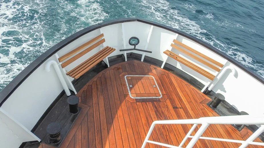 Die MS Sjøveien (was „Seeweg“ bedeutet) wurde 1964 in Bergen für die norwegische Regierung gebaut und war für diese in verschiedenen Funktionen im Einsatz. Von 1979 bis 1995 wurde sie als Ausbildungsschiff für Seeleute genutzt. Seit 1995 befindet sie sich in Privatbesitz und war in den vielen Jahren seitdem für die norwegische Küstenwache im Einsatz. Nachdem sie in den letzten Jahren als Hotelschiff diente, wurde sie nun zu einem klassischen und exklusiven Passagierschiff umgebaut und begann ihre Karriere in Spitzbergen im Sommer 2017. Sie ist eine wahre Schönheit mit Holzdecks und klassischen Details. Auf dem Hauptdeck gibt es viel Platz und auch auf der Brücke befindet sich ein ausgezeichneter Bereich, von dem aus man einen herrlichen Blick auf die magische Landschaft von Spitzbergen hat. Auf dem Deck befindet sich auch ein holzbeheizter Whirlpool.