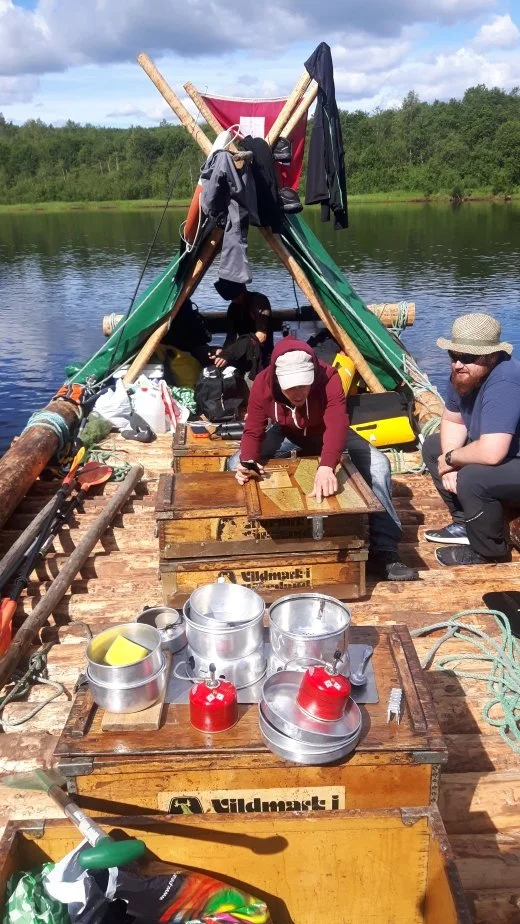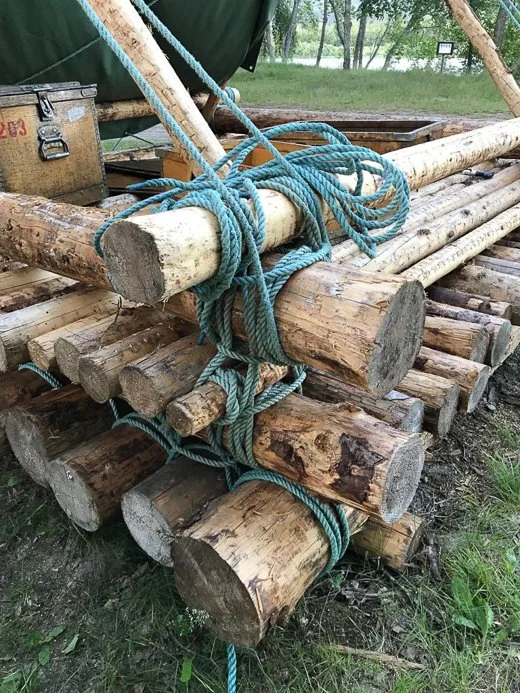 Eine Woche lang waren wir unterwegs, legten einhundert Kilometer zurück an Bord einer 3x9 Meter grossen Konstruktion aus runden Holzbohlen und Seil. Ohne Nägel oder Schrauben, selber zusammengebaut, wohl unter professioneller Anleitung, aber trotzdem mit eigenen Händen. Das Erste was über Bord geht, ist die eigene Komfortzone. Der Fluss ist kalt, die roh behauenen Baumstämme schwer, der Himmel schickt gelegentlich Regenschauer und die Strömung hält manche Überraschung bereit – nicht nur Bäume, auch kaum sichtbare Felsen, Kehrwasser und Sandbänke gehören zum täglichen Repertoire des Flössens. Gerade Letztere enden mit schöner Regelmässigkeit mit einem Bad im kühlen Fluss, um schiebend das Floss wieder frei zu bekommen. Auch bei bescheidenem Wetter.