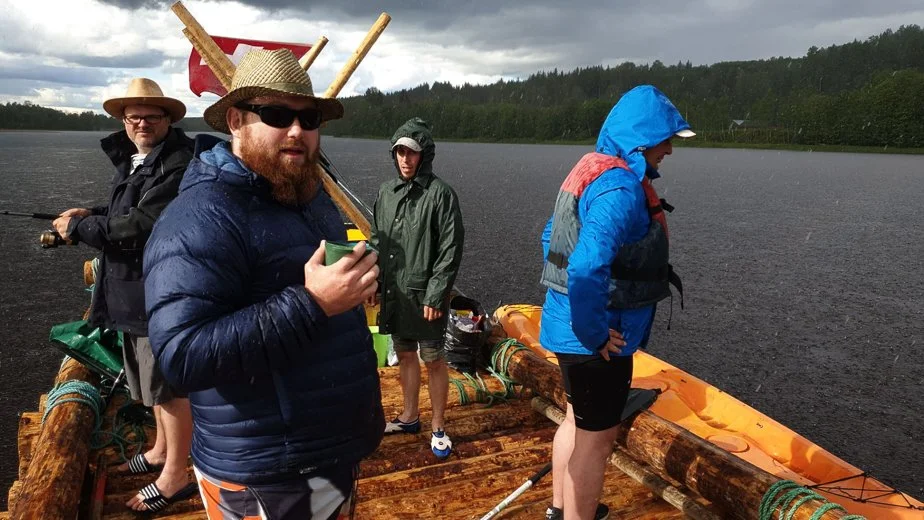 Der nächste Tag war wie erwähnt ein Ruhetag. Trotz Dauerregen beseitigten wir die grössten Schäden am Floss, bevor wir den Rest des Tages unsere Knochen schonten. Ein echt schwedische Fika (Kaffee und Kuchen) durfte nachmittags auch nicht fehlen und siehe da, gegen Abend besserte sich auch das Wetter wieder