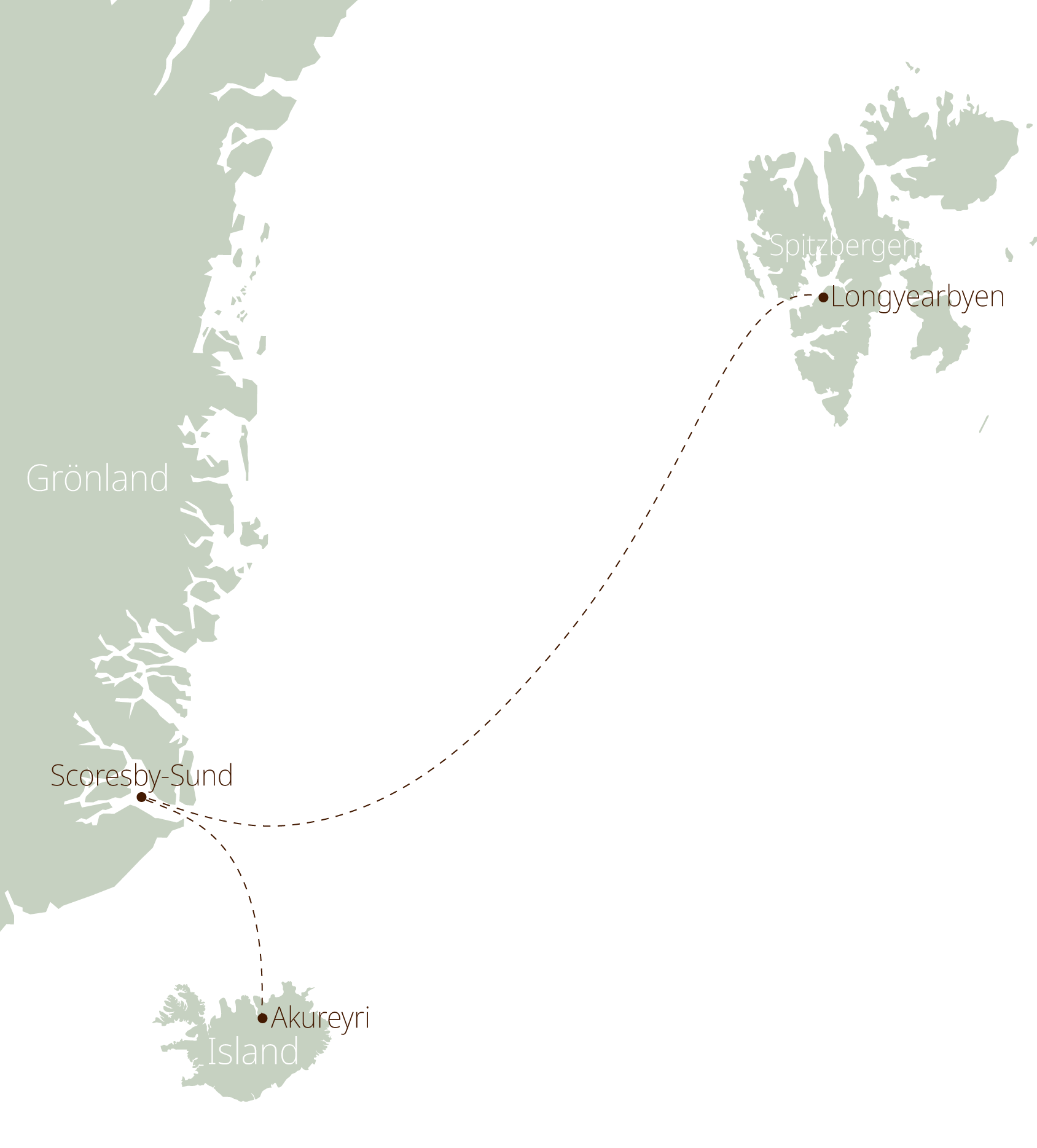 Die letzte Etappe führt durch die Dänemarkstrasse nach Akureyri in Nordisland. Voller Eindrücke, Stille, Licht und Staunen endet Ihre Reise am 17. August – aber sie wird noch lange in Ihnen nachklingen.